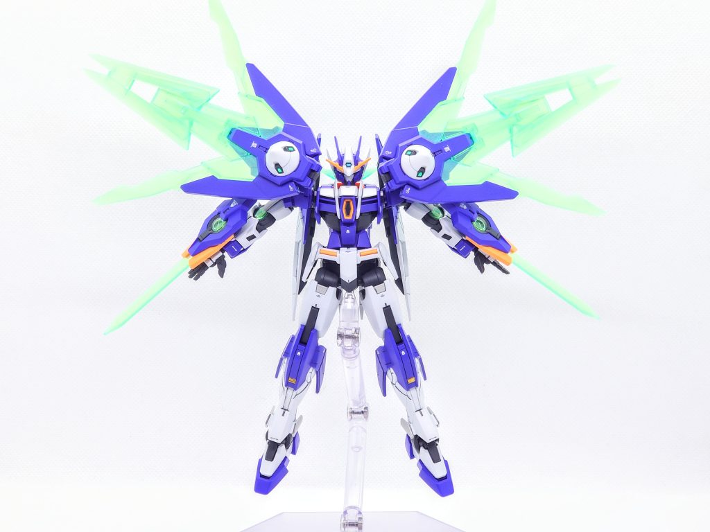 マスクは加工してエクシア系の顔立ちに変更。肩部はクアンタに、大腿部はダブルオースカイのものにそれぞれ交換しました。