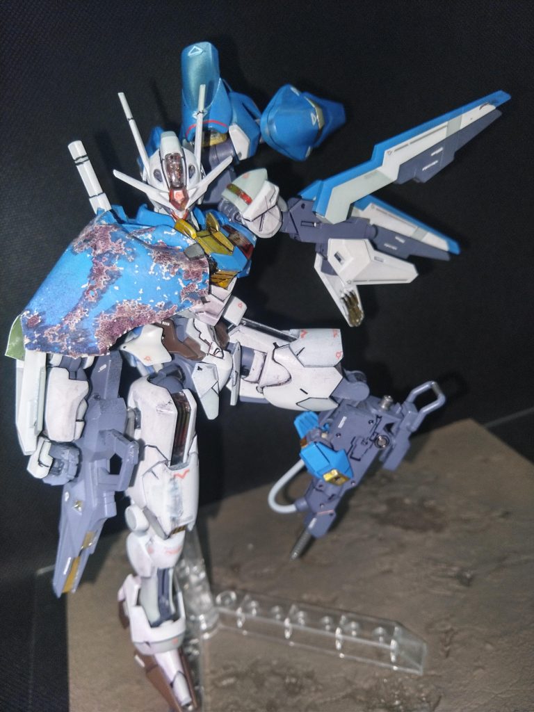 エアリアルをベースにエクシアリペア風味を付け加えて作り込んだカスタム機としての設定をでっち上げた上で製作されている想像力と技術力はすごいですね。義手と義足は武器として転用可能な感じもします。