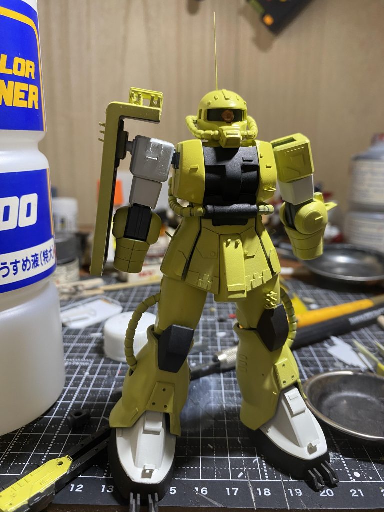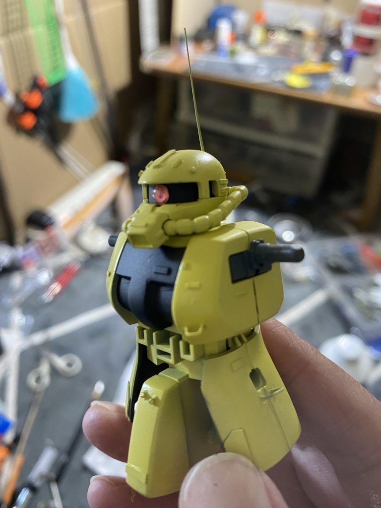 震える山より。道路をバターンと倒した後のグフカスタムを制作中…