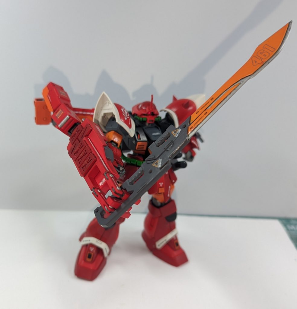 大型アーム、アシンメトリーなデザイン、ヒートブレード、派手なカラーリングとなかなかゲテモノっぽい改造になりましたが、デカい装備はカッコイイからヨシッ(*´ω`*)