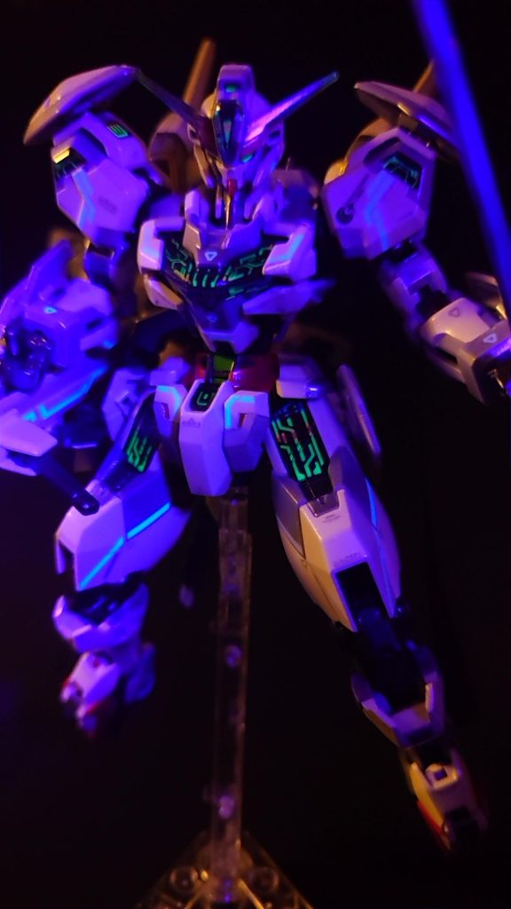 ブラックライトで発光するデカールを使用してます。