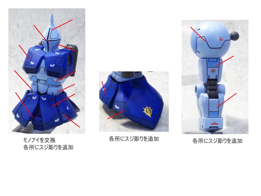 本体の各所のプロポーションを変更しました。 全体的にスジ彫り…