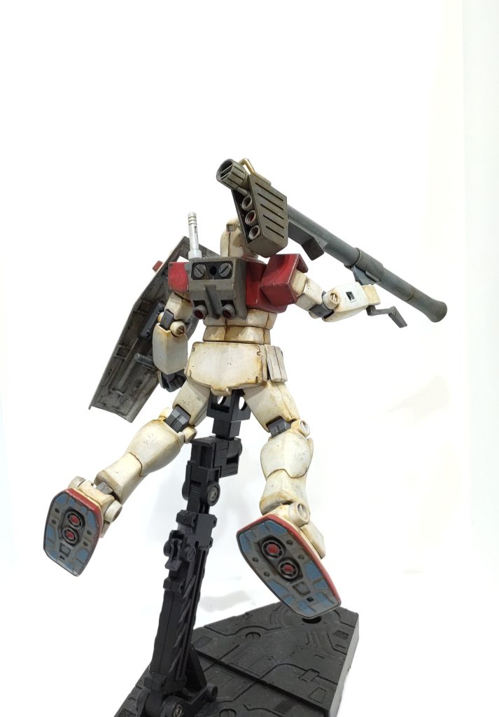 ガンダムの白は成形色ですが、ジムは黒サフからの白を塗っているので質感がやっぱ違いますね。ガンダムをどうにかしたくもなっています😅