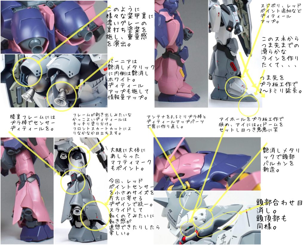 バーニアが多いMSだったのでバーニアをディティールアップ、塗り分けバックスタイルもめちゃくちゃかっこいい。