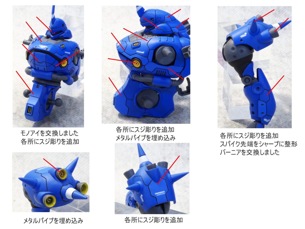 適所にスジ彫りの追加とプラ板チップを埋め込みました。 グラデ…
