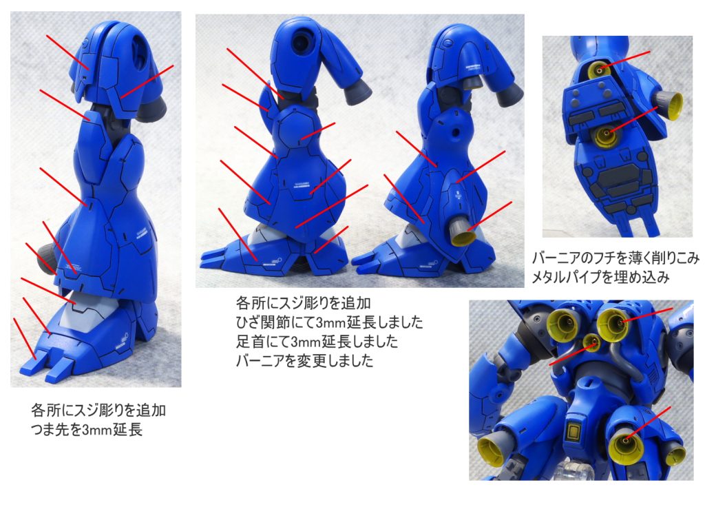 太ももをプラ板にて1mm幅増ししました。 各所にスジ彫りの追…