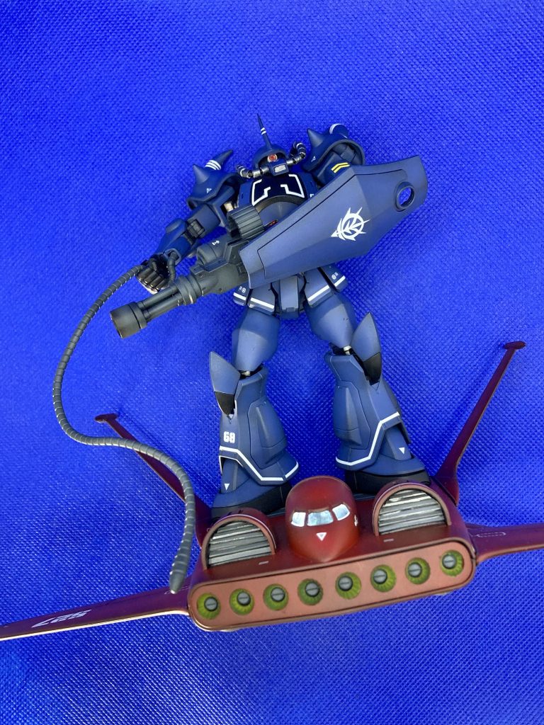 みんな大好きグフリバイブ版です ドダイYSに乗せるためにかなり以前から制作をしていたのですが、「GFFMC」シリーズでのグフの発売が決定したことで後出し感が半端ないですが、輸送機で移動できるためガトリングガン弾薬を増量した重量無視の重火器仕様にしました