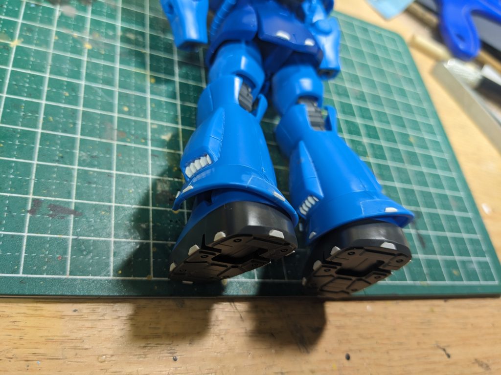 脚の排気口部分を切り取って、waveのディティールパンチ台形③で切り出したプラ板でディティールアップしてみました。