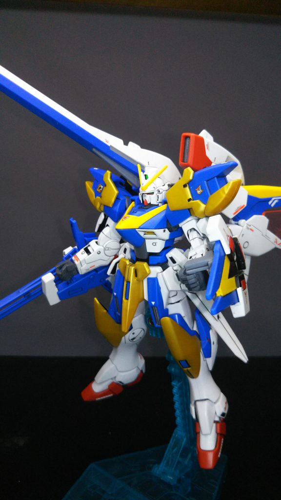 HGUC V2アサルトバスターガンダムを制作しました。シールを極力使わないつもりで制作しましたので、メガシールド以外はほぼ成形色を活かして塗装は少な目で仕上げました。