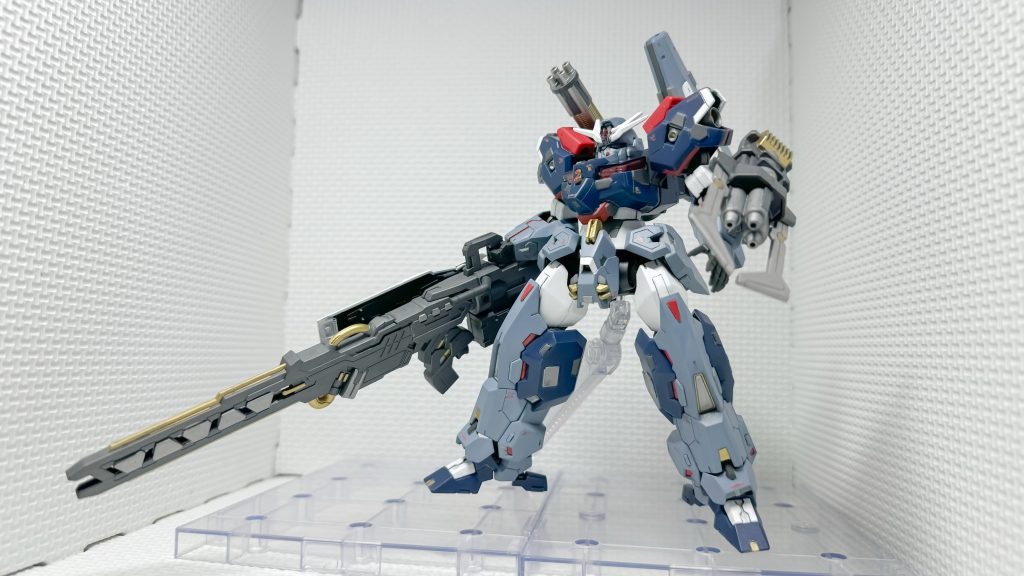 ルブリスウルの拠点攻撃装備案として作成しました。本編のルブリスウルも地球に関係のあり、ごつい機体だったので、名前は、ギリシャ神話のガイア子供の名前の「ティターン」としました。さらにごつくするために、素体をディテールアップしつつ、SDのパーツや、ビルドファイターズが流行り始めた頃あたりのHGカスタマイズキャンペーンでもらったパーツを使って盛っていきました。