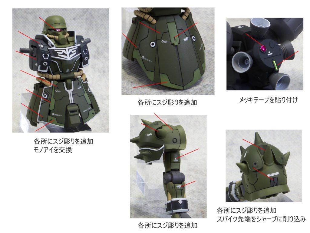 本体の各所のプロポーションを変更しました。 全体的にスジ彫り…