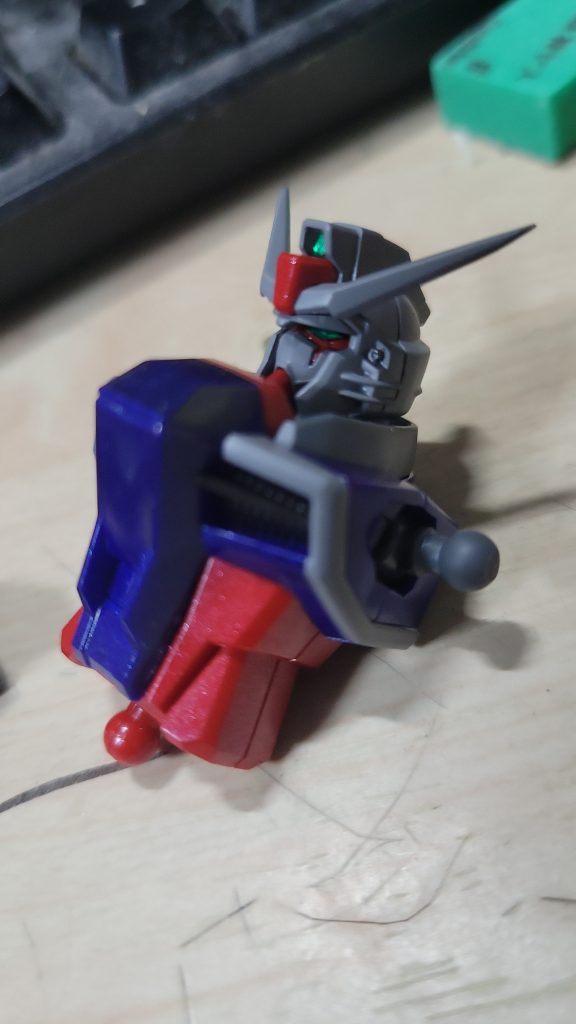 SpecⅡの特徴であるグレーは呉海軍工廠標準色をチョイス。ブルーはウチでよく使うレーシングブルー。赤はベタにメタリックレッド。アロンダイトの剣先もSpecⅡはよく見るとグレーっぽくなってたので、通常のガンメタルよりグレーに近いガンメタルカラーで塗ってます。