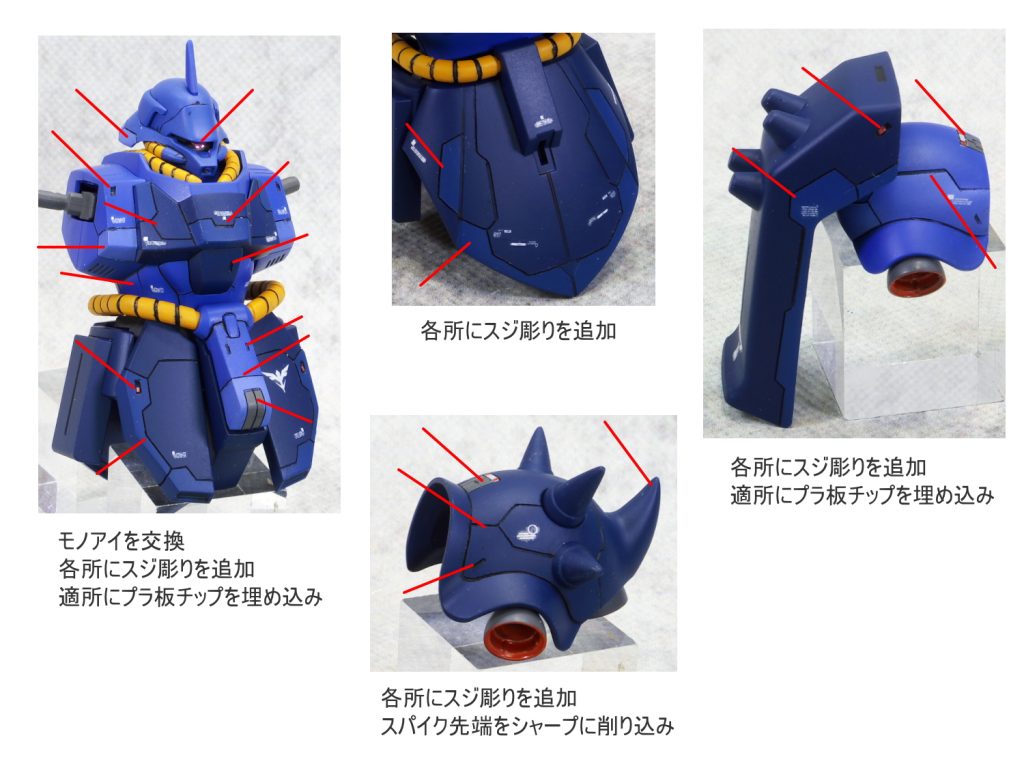 適所にスジ彫りの追加とプラ板チップを埋め込みました。 グラデ…