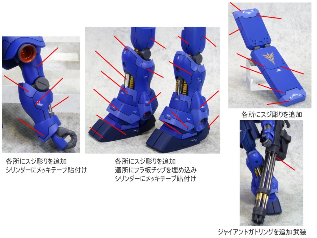 太ももをプラ板にて1mm幅増ししました。 各所にスジ彫りの追…