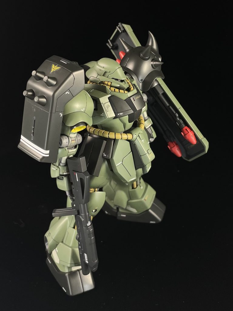 量産機ながら 重厚なイメージのある機体なので、シールドやフロントアーマーは プラ材で厚みを持たせながら加工しました。