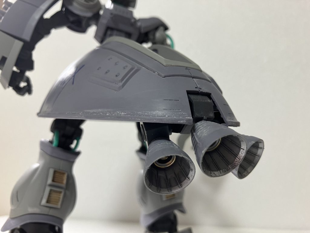 変形させるとき、本当は胴体ごとスカートの中に収納するのですが、関節が緩くなるのが怖いので腕だけ外して装着しています。
