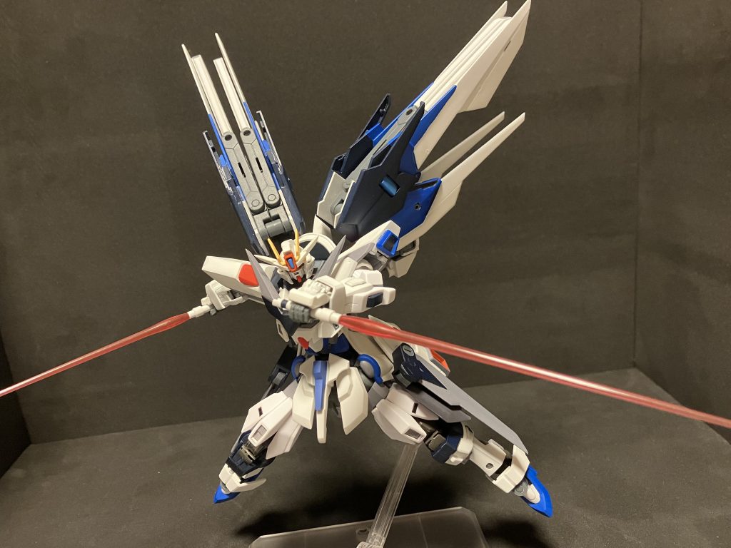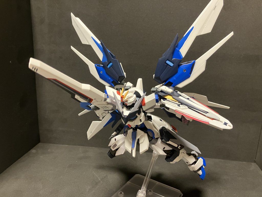 背面をバーニア増し増しにしました。ウイングバインダーの開き方は元のフリーダムと差別化するためウイングゼロに似た感じで開くようになっています。
