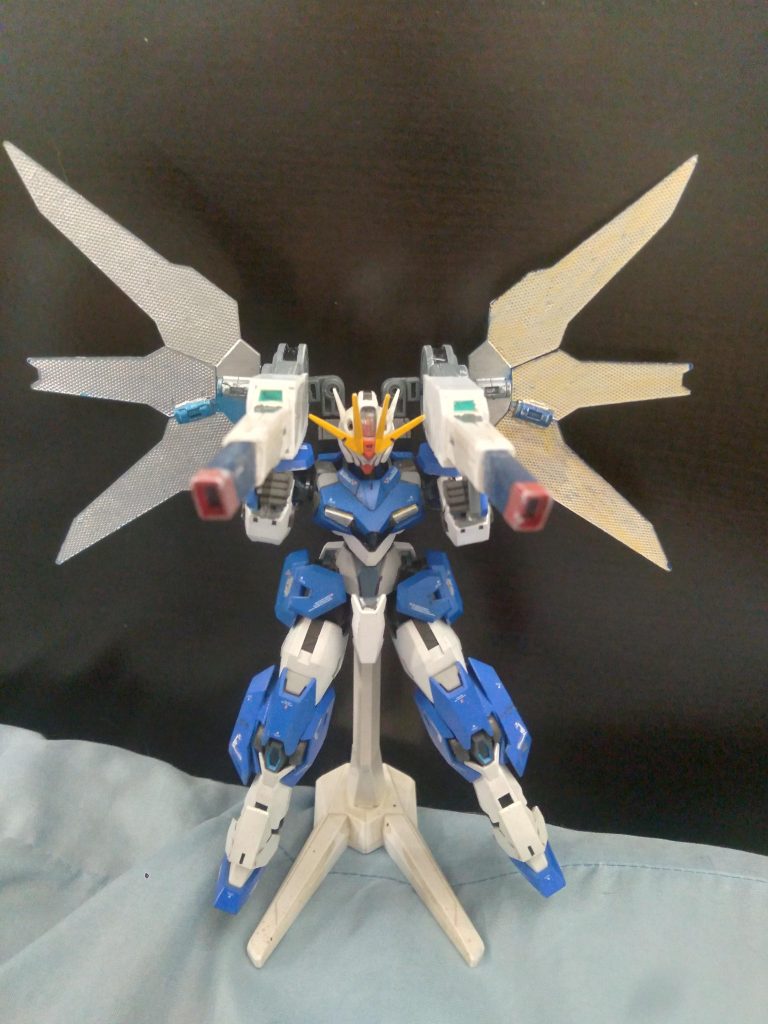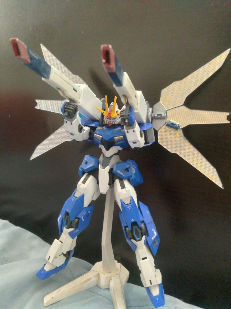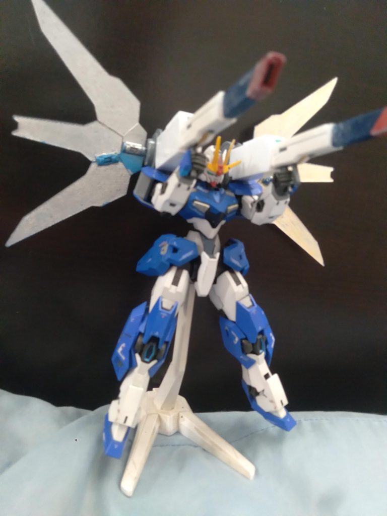 My custom XVX-02 Gundam Leander equipped with some custom satellite cannons. The cannons were originally from the Jegan Blast Master. I modified them and did some work with pla plate to make my own version