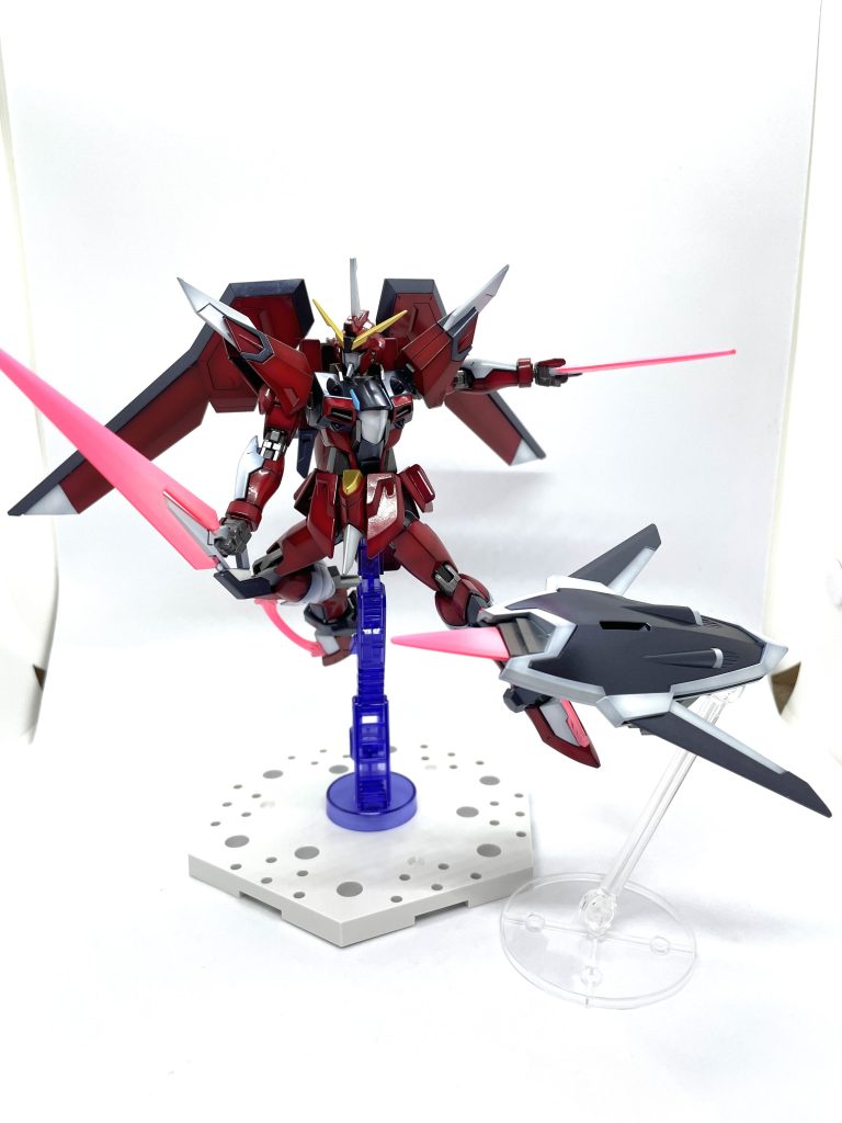 シンの機体という事で、ザフトをイメージして設定の機体色よりも暗めの赤で仕上げてみました。今回もグラデーション仕上げで。