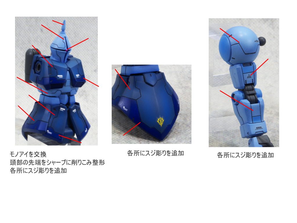 本体の各所のプロポーションを変更しました。 全体的にスジ彫り…