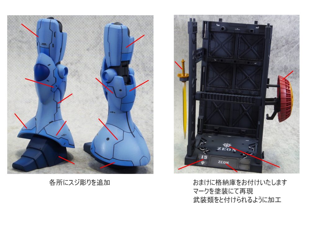 太ももをプラ板にて1mm幅増ししました。 各所にスジ彫りの追…