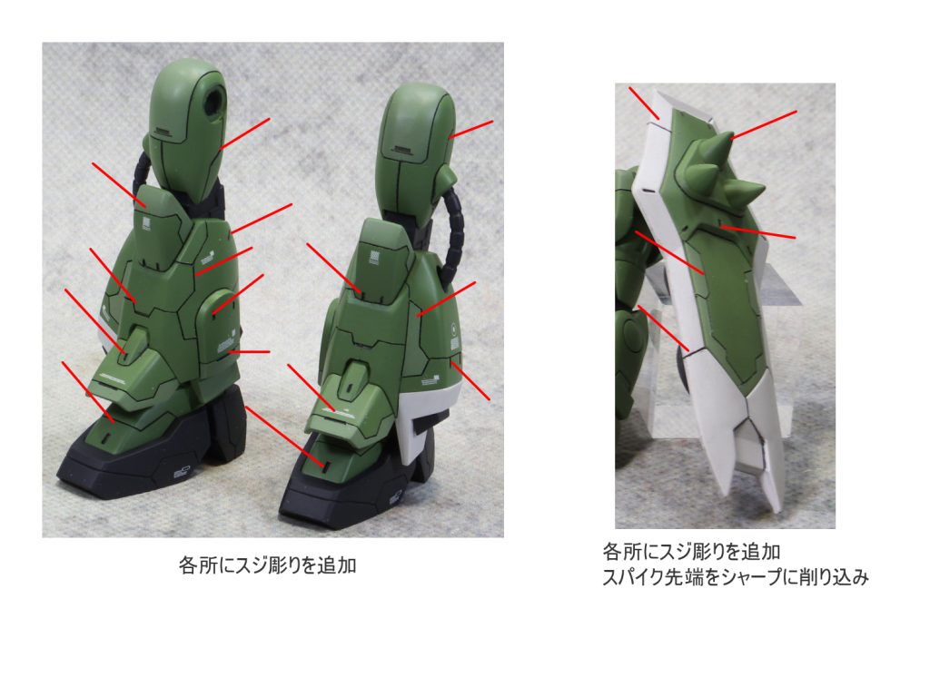 各所にスジボリにて情報量を追加して塗分け 太ももをパテにて幅…