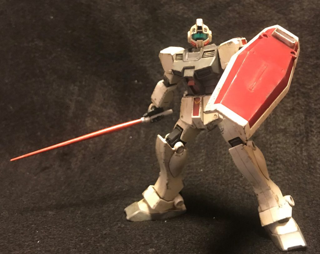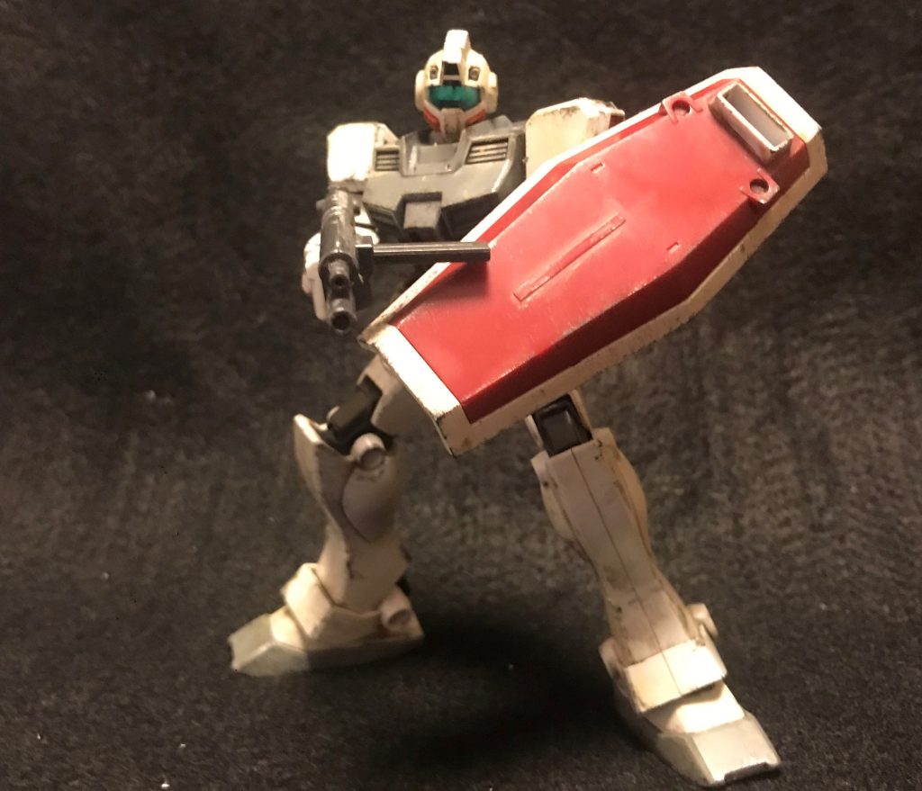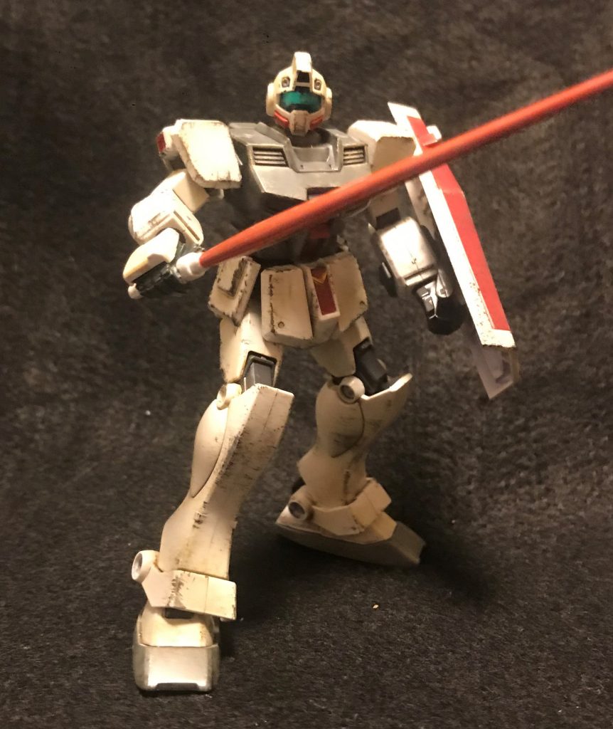 素組みでガンダムマーカーでの部分塗装とスポンジチッピングで仕上げました。