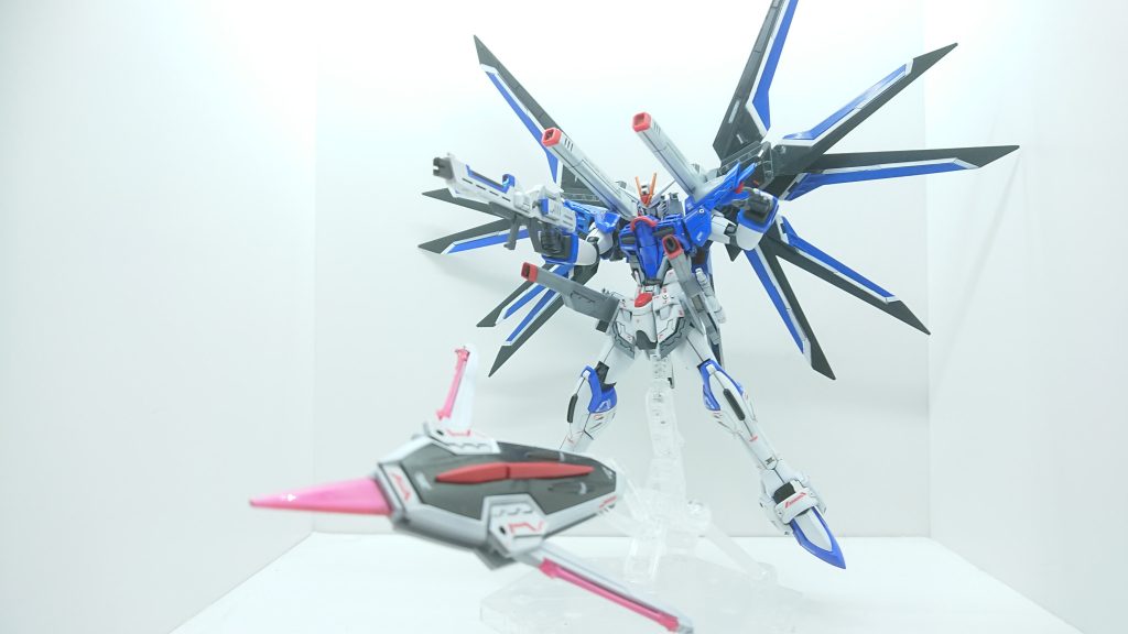 今回ライジングフリーダムガンダム制作しましたSEED見たことないですが😅機体がかっこいいのはしっていたので、やはりでここまで作りました イヤ〰️意外と苦戦しましたよマスキング大変でしたしデカール発売してない どことなくF90みたいな感じにしたかったのでうまくいきました