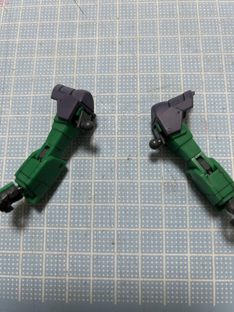 肩:そのままでは形状が違うため、似てるなぁと思った(写真)ビルドバーニングを使用しました。ただ付け替えただけでは腕の可動域が落ちるため、ビルドバーニングの体と腕の接続部分をくり抜きネモの腕に合わせて作り直しました。