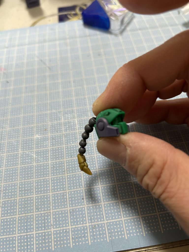 おさげ髪は手首や腰などに使用されるボールジョイントを連結させ、髪の先は余っていた某MGの親指部分で作りました。