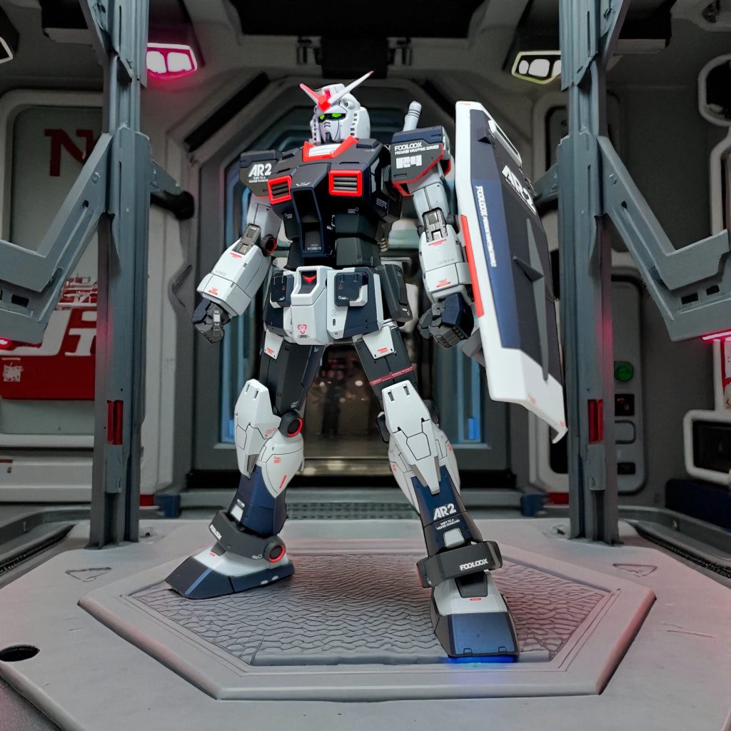 ベースはHGのオリジンガンダムです。カラーリングはなるべくPGで製作されたモデルに寄せつつ、デカールは3rdパーティ製の仮想レーシングスポンサーのものを利用しました。