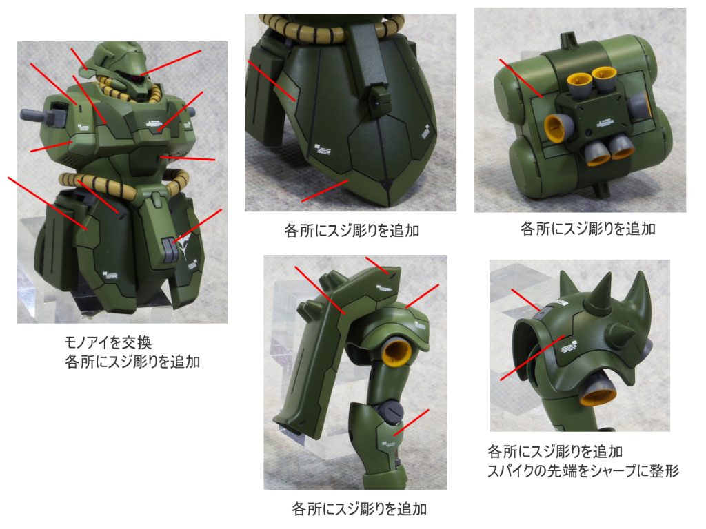 本体の各所のプロポーションを変更しました。 全体的にスジ彫り…