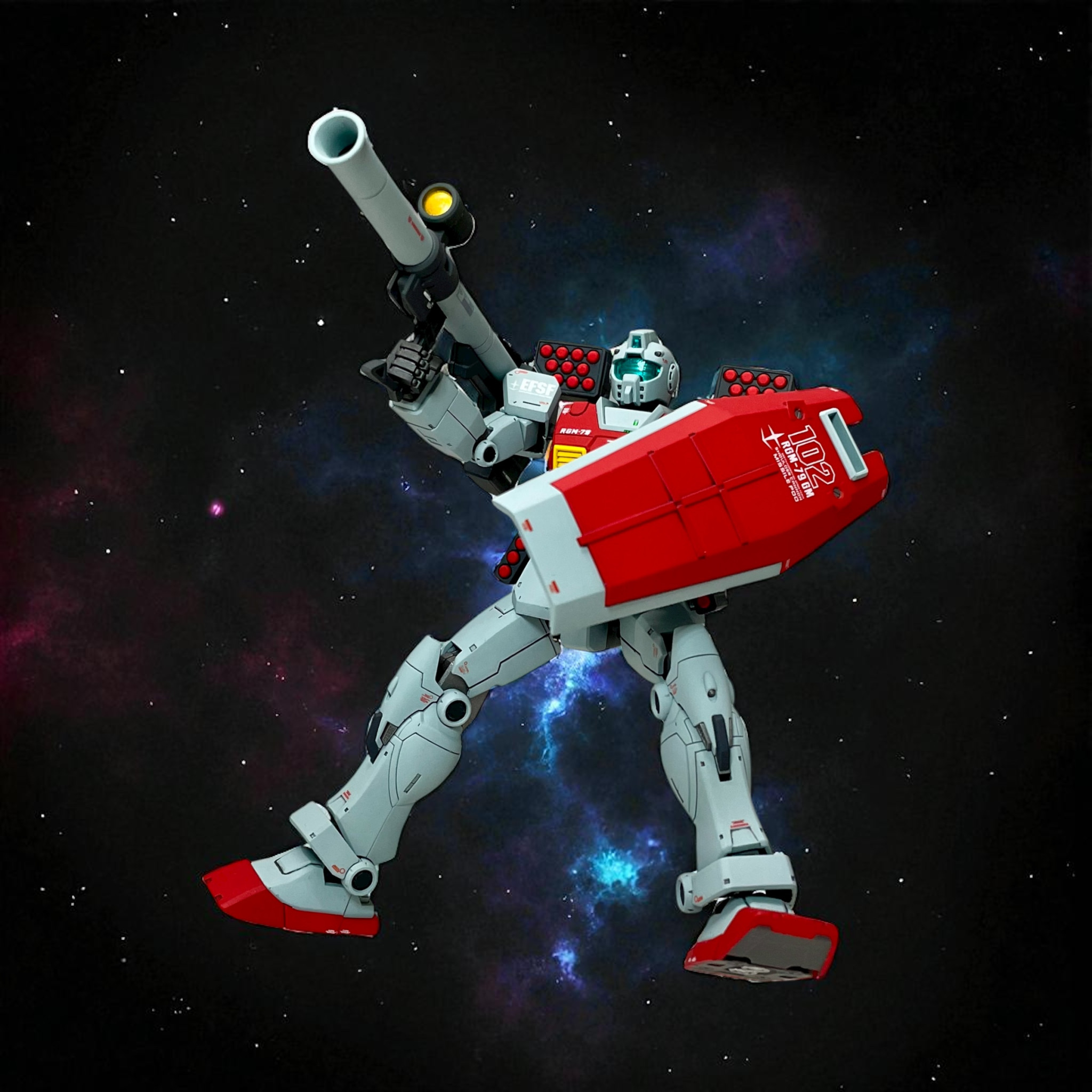 たくさんのミサイルポッドを背負っているので、なんとなく宇宙空間専用というイメージで、EFSFのデカールで仕上げました。