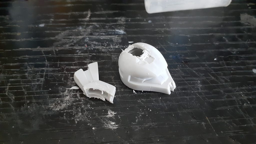 まずは、肩のエッジを尖らせるためにプラ板を使って加工しました。
