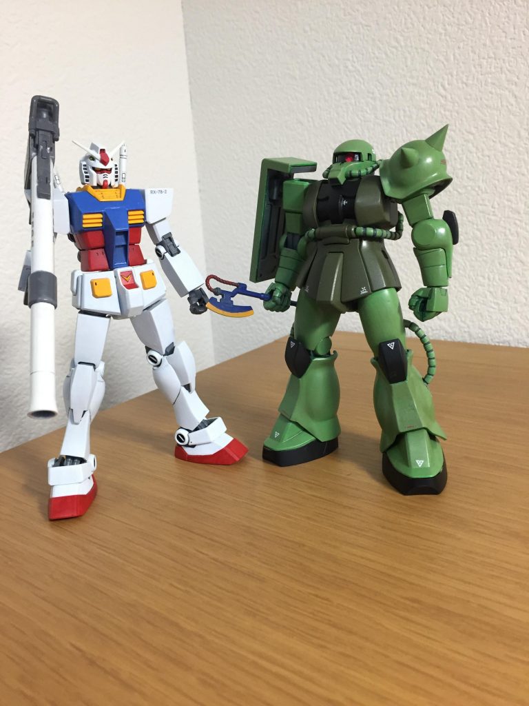 HGUCザク2です。自分の好きなように改造して筆塗りで楽しみました!