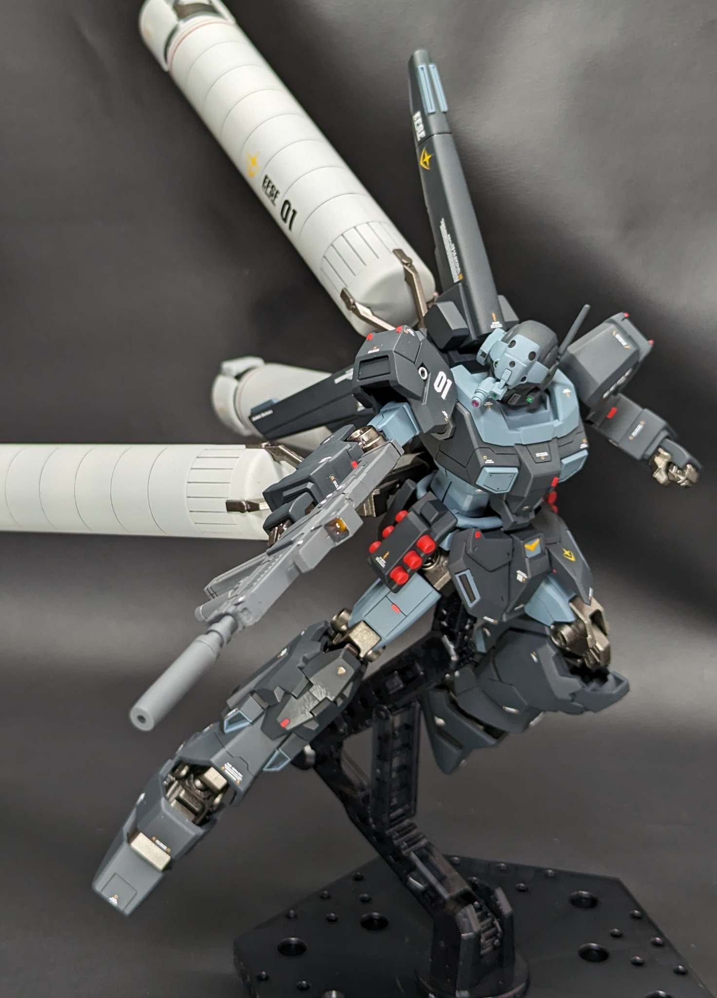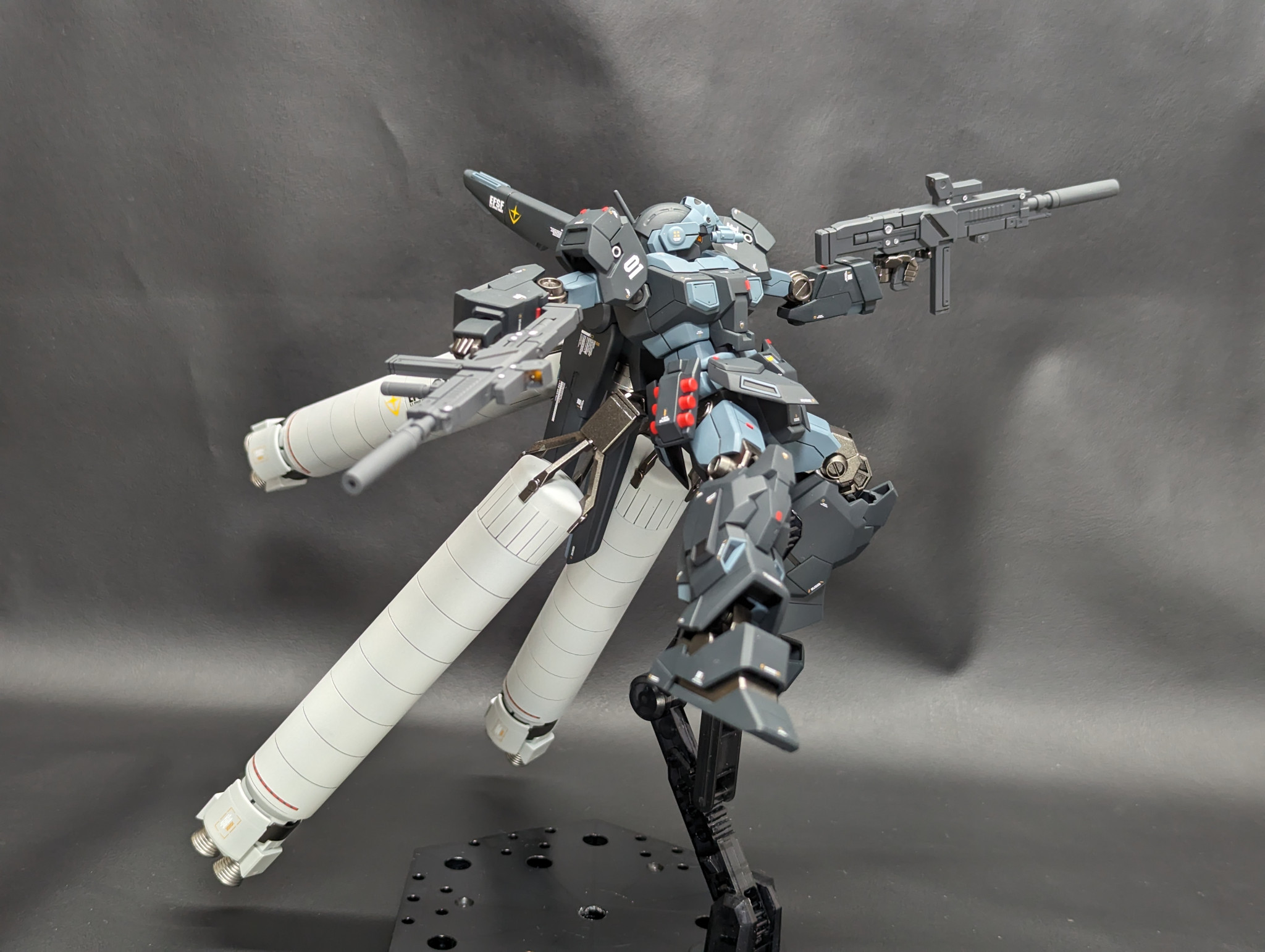 バックパックの小型スラスターはすね前両側面やリアアーマーのスラスター同様にブルーグレーでマスキング塗り分けしました。
