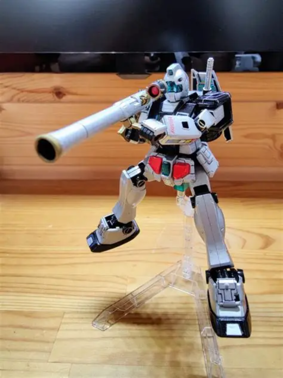 ビームスプレーガンを、ガンダム用ビームライフルに取り替え、バズーカをバックパックに取り付け、