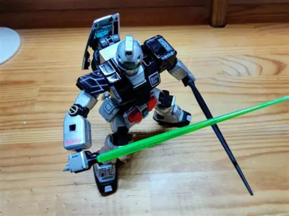 デフォルトブラックサーベルと、誰の余剰パーツか最早わからんグリーンのサーベルを持たせて二刀流。
