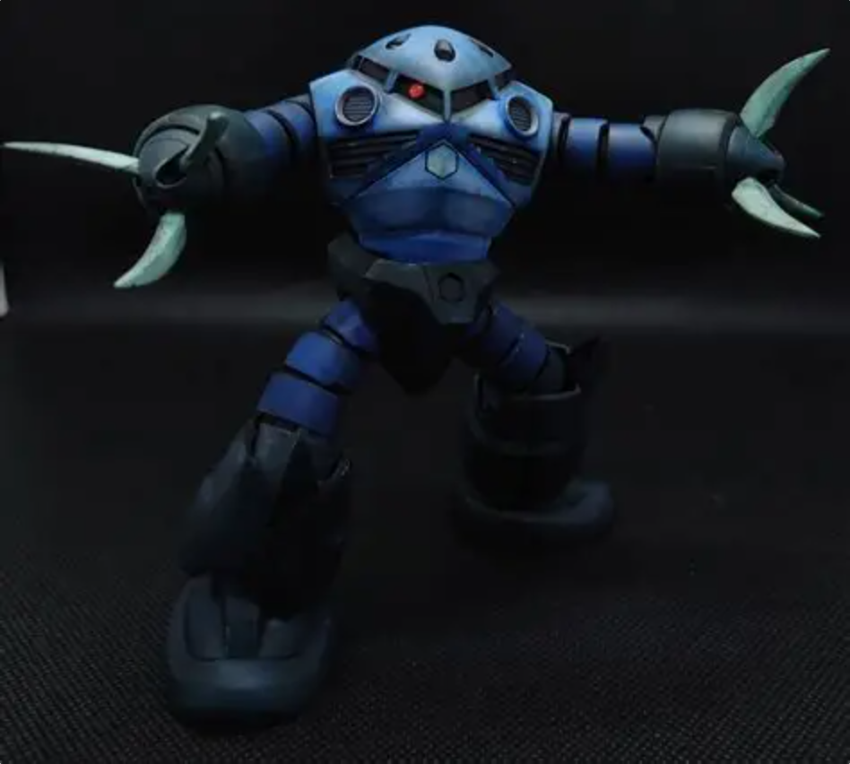 本体、関節はリアルタッチマーカーグレー3で部分的に汚してから上からブルーを塗ってます。
