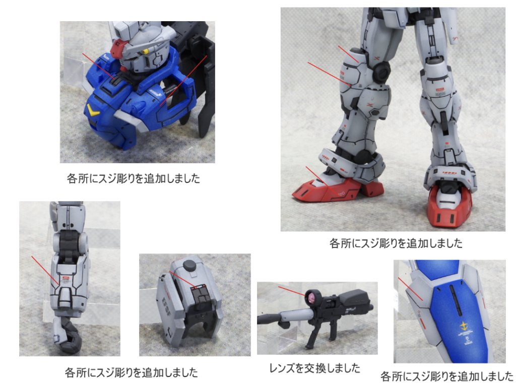 本体の各所のプロポーションを変更しました。 全体的にスジ彫り…