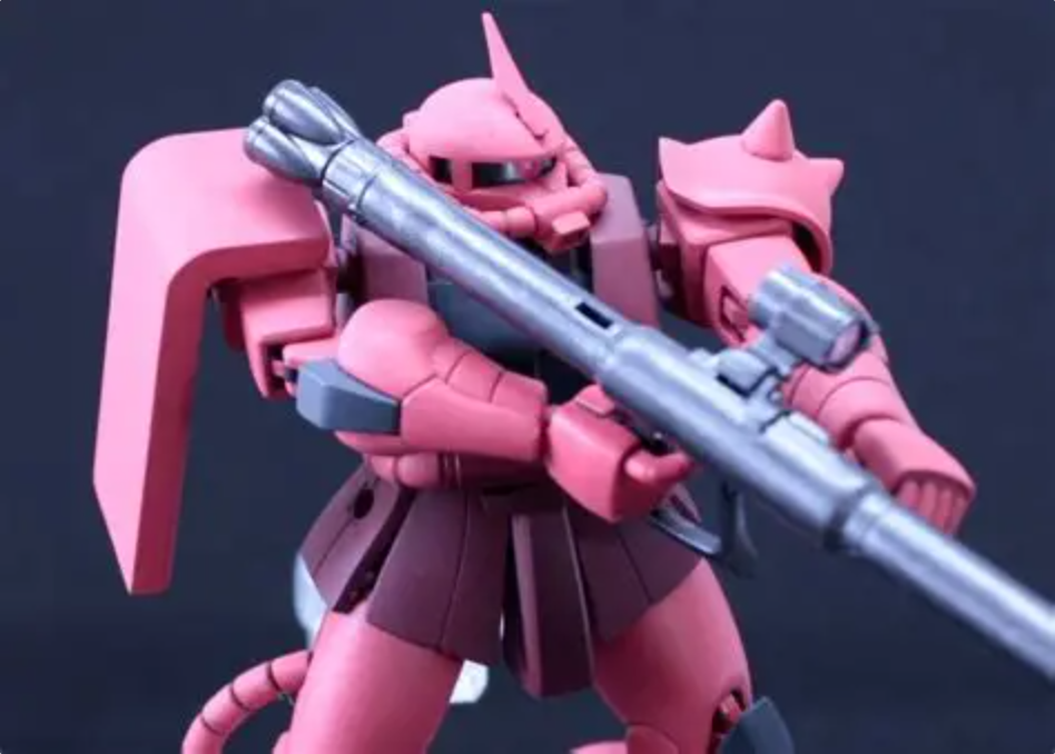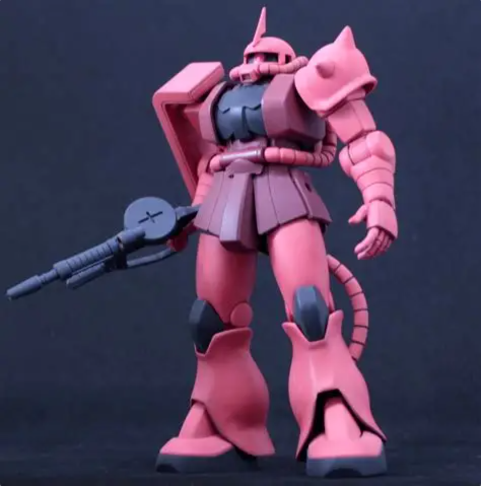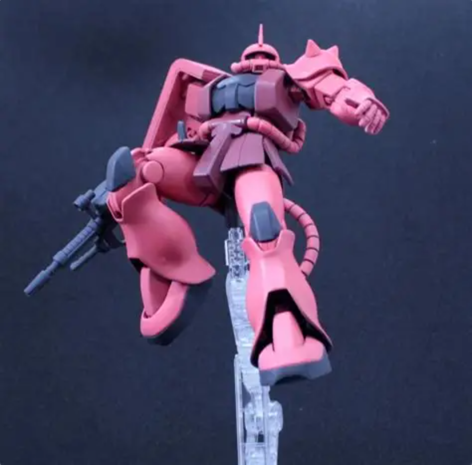 脛の形状変更、関節部とハンドパーツのピンク塗り、ポイントを押さえた改造が効いてます!アニメのザクそのもの、すごくカッコいいです。自分もシャアザク作りましたが、素組では、何かシャープで洗練されすぎって思っていて・・・。十吉さんの方法が最適解ですね。勉強になりました!