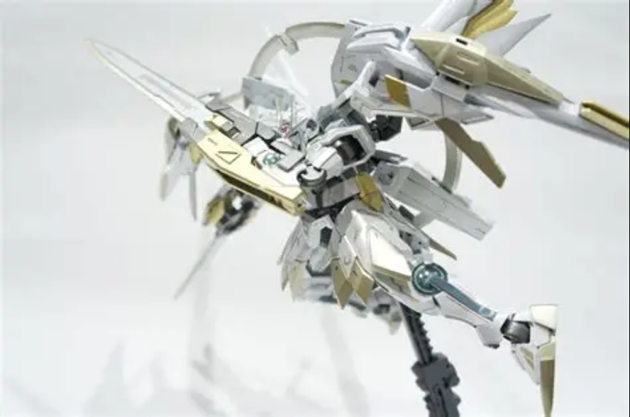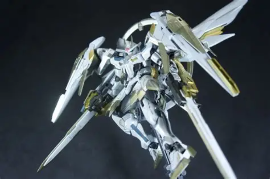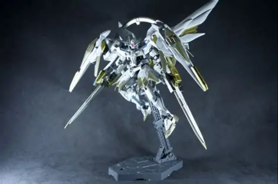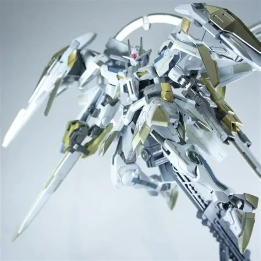 ダブルオーライザーをベースにRGウィングガンダムゼロewとHGネプテイトウェポンとHGアメイジングエクシアからパーツを拝借しミキシングしております。