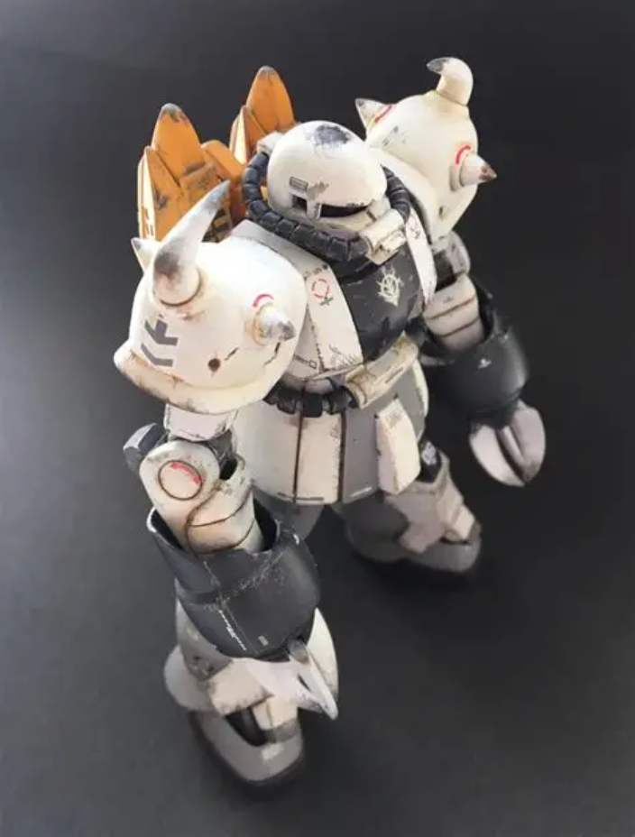 頭のてっぺん、必ずと言っていいほどに塗装ハゲを作るのが当時のマイブーム。今にして思えば「ザクで頭突きならもっとひさし側がハゲるやろ?」とも思うのですが、なぜかこっちの方が自然と思ってしまう不思議。