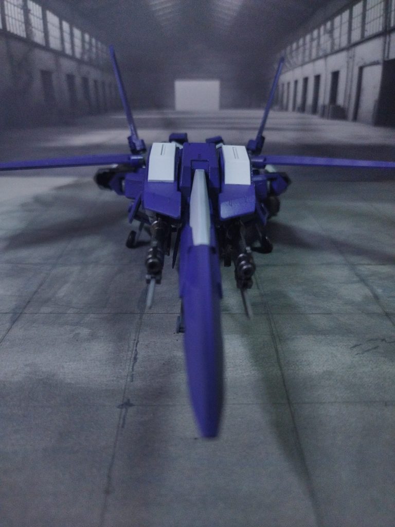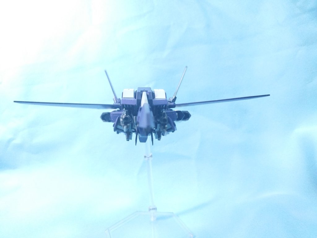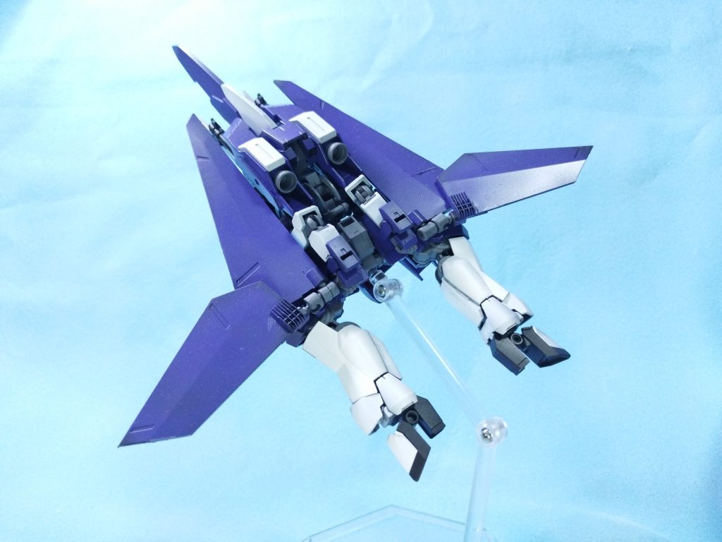 分かりにくいですが、フロントスカート、爪先の可動化、足首の伸縮、肩装甲の迫り出し等の飛行形態時の見栄えが良くなるように改造しています
