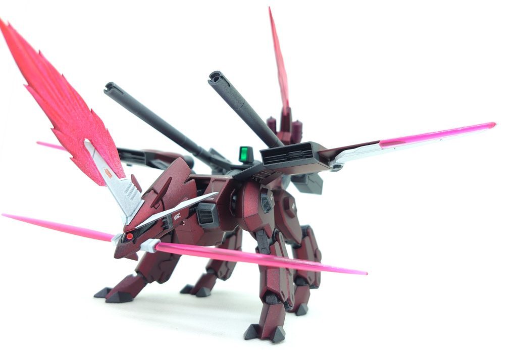 ウイング展開、そしてビームサーベルの発生。ここはズゴックへ繋がる意匠を狙っています。少しガイアっぽくもありますね。頭の片隅を青いライオンがよぎりますが、きっと気のせいでしょうw