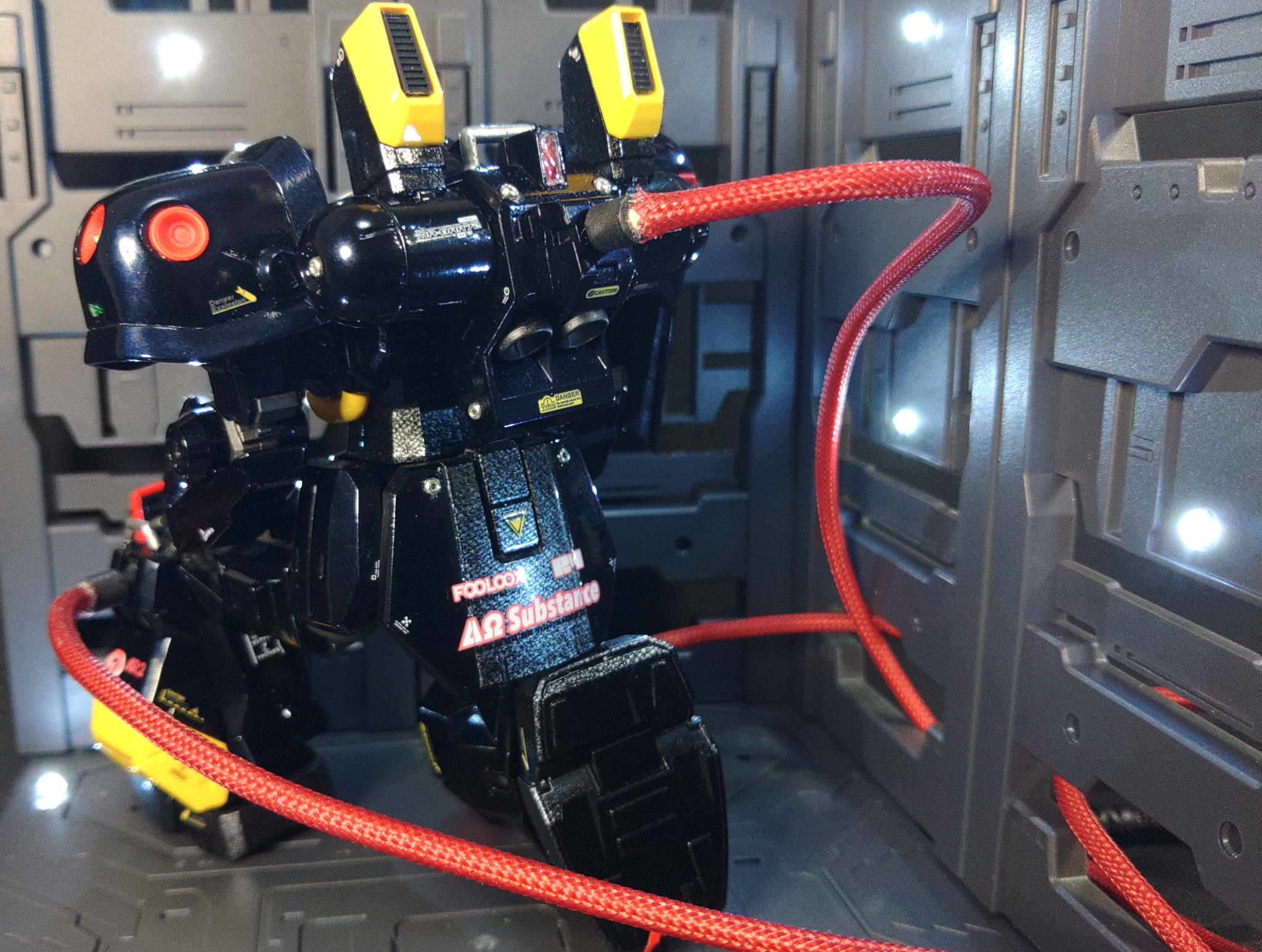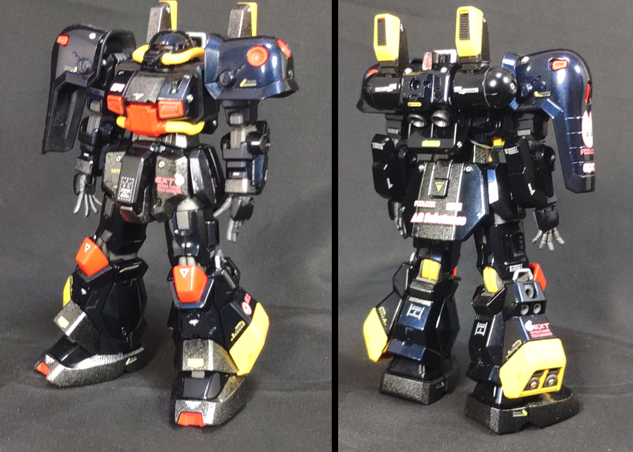 バックパック中央と両脚部スラスターユニットにピットイン時の燃料補給をイメージした状態です。