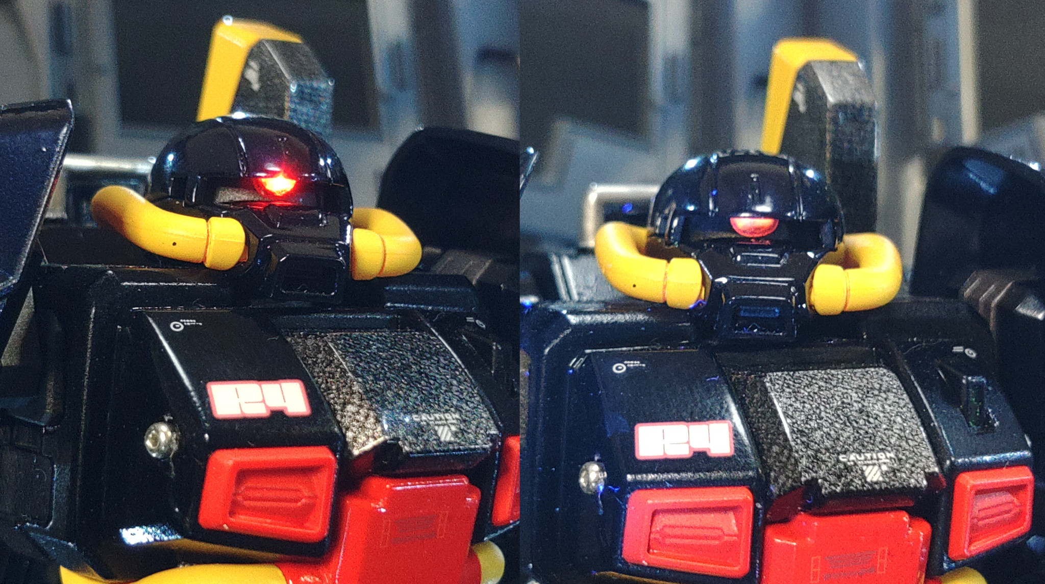モノアイは今回珍しくLEDユニットを組み込みましたが、蛍光カラーにもなっているのでブラックライトで反応します。
