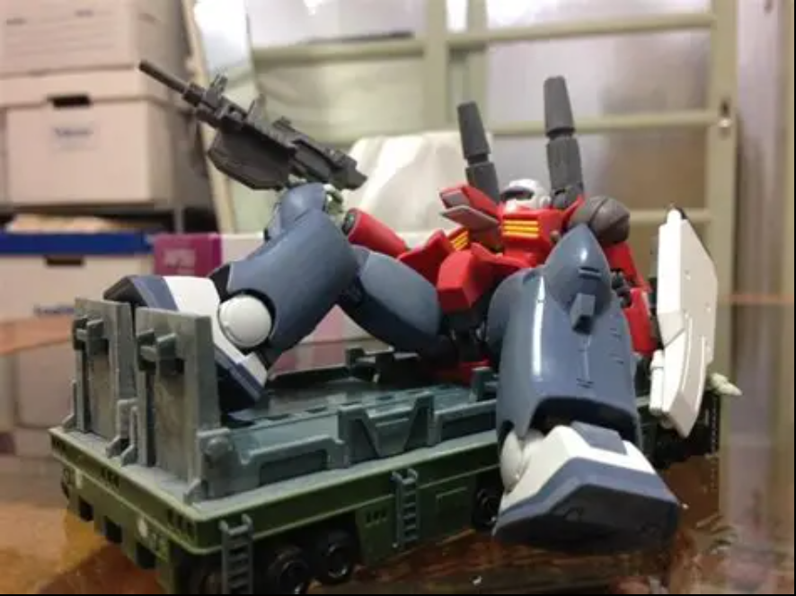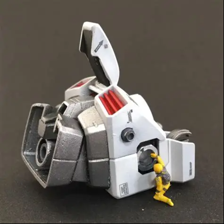 作品的には「建造されたばかりの真っさらなガンキャノン」と「使い込まれたトレーラー」の対比、「連邦パイロット製作」、「HGにおいてのハッチオープン表現」を念頭に工作。