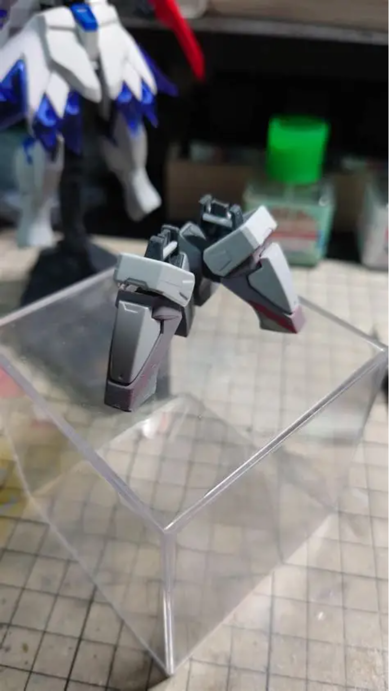 スカートが長いせいか、足が短く見えたので1ミリプラ棒で関節を伸ばしています。
