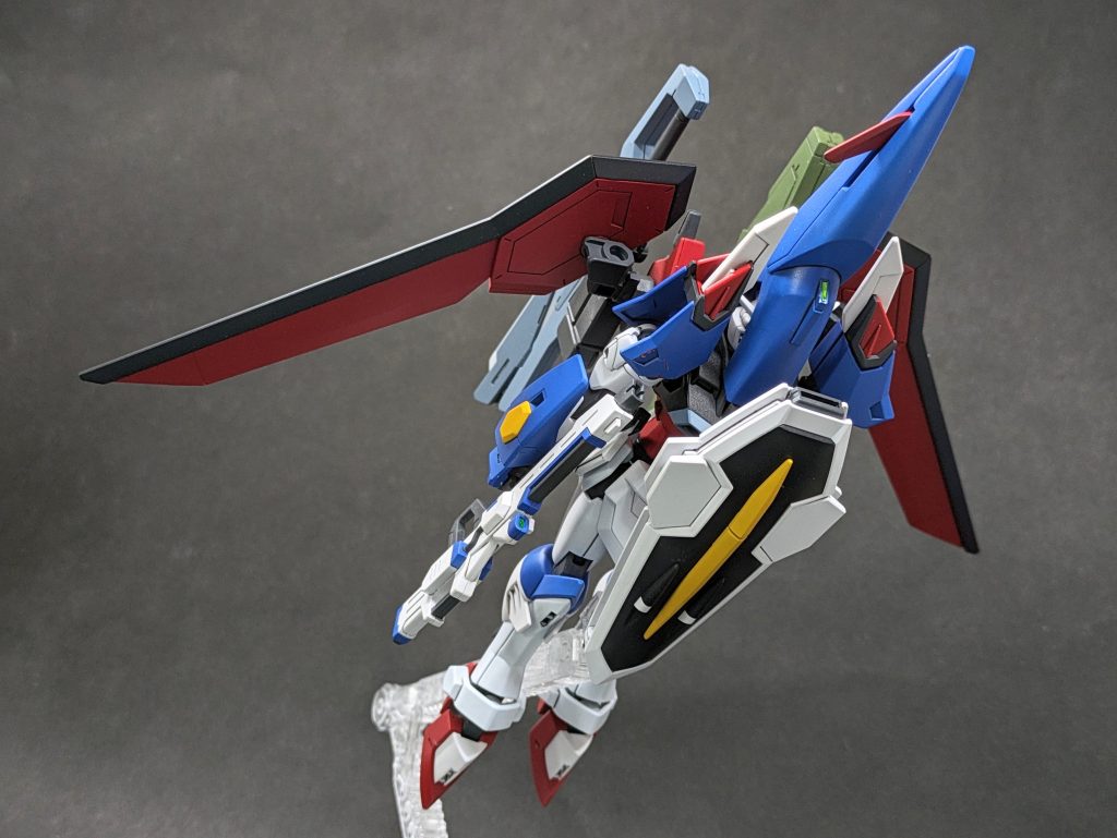 新型の可変型ガンダムタイプMSかと思わせる機体構成は実に興味深いところです。見た感じがライジングフリーダムのような見た目なのかと思いましたが、ディスティニー風味も少し入っていたかとも思える出来映えは中々面白いですね。